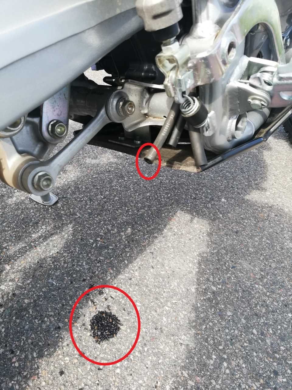 Aus einem (siehe Bild) kam bei mir neulich eine dunkle Flüssigkeit. (siehe Fleck unter dem Moped). Ich kann nicht genau sagen, ob Öl, Benzin oder Wasser.. hatte etwas von allem. Ist das normal? Danke vorab!