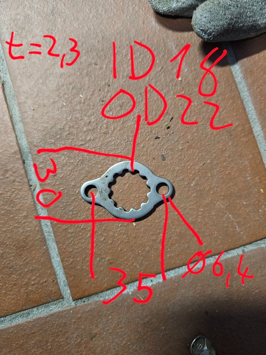 Das Sicherungsblech wird nicht "an den Adapter" ran gezogen, sondern gegen die Nut. Zwischen Adapter und Sicherungsblech wird ein kleiner Spalt sein (bzw. der wird eventuell beim anziehen eliminiert, muss man schauen)Supersammy hat geschrieben: ↑Dienstag 28. April 2026, 09:35wenn ich das richtig deute wird dann der Adapter inkl. des Sicherungsblechs mit den längerne Schrauben verschraubt. Korrekt? Der Adapter stützt sich dann von vorn gegen die Welle ab und das Ritzel wird mit den Schrauben gegen das Sicherungsblech an den Adapter gezogen?