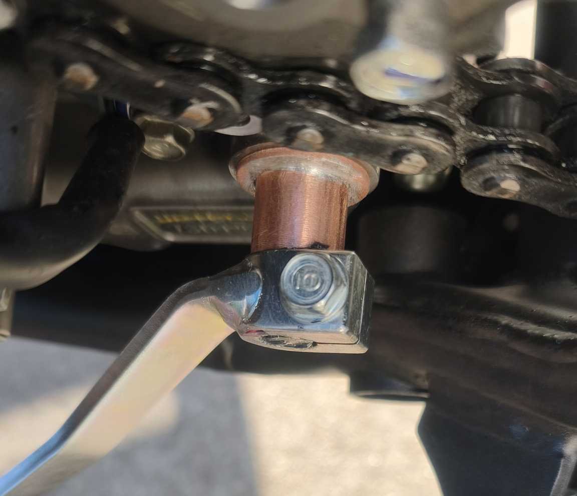 Ich klinke mich mal ein. Um Schäden an der Schaltwelle vorzubeugen und aus purem Geiz (gibt wohl fertige Lösungen dafür) und aus Bastellaune, habe ich eine Buchse aus einer Rohrmuffe und einer Unterlegscheibe gebaut. Ob das Ganze tatsächlich die Welle schützt, zeigt der nächste Ausrutscher
