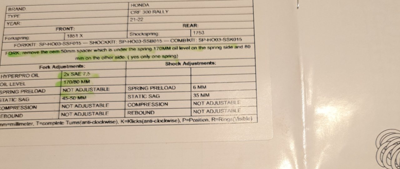 Bei dem Aufkleber auf der Anleitungen für die Gabelfeder ist nur der linke Teil relevant. Der rechte Teil des Aufklebers für das Federbein ist zu ignorieren. Der befindet sich ja auf der Anleitung für das Federbein.