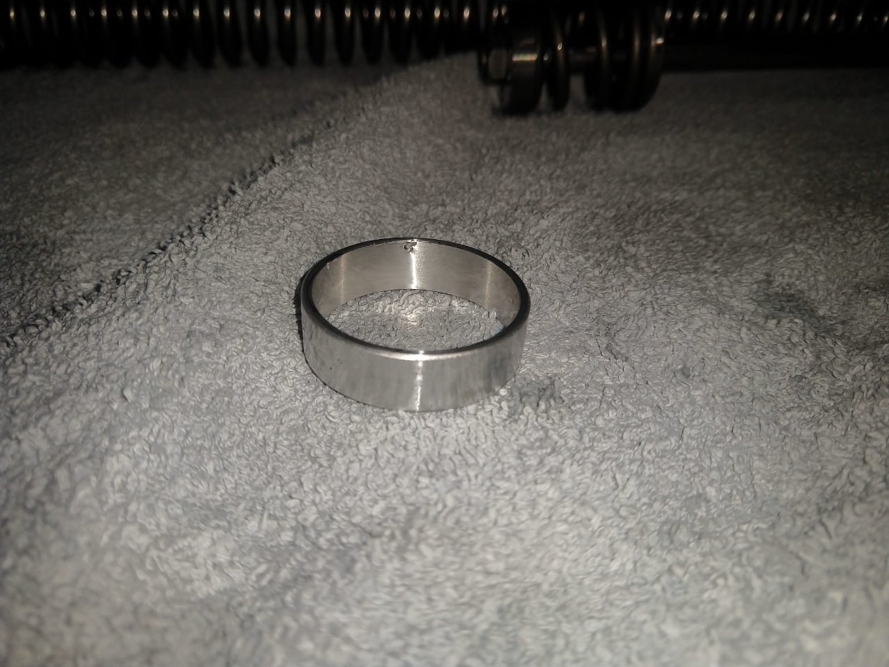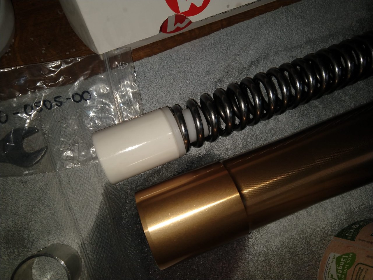 Gestern haben wir meine Gabel nochmal aufgemacht, um das Klappern zu eliminieren (bin in der Zwischenzeit insgesamt 300 m gefahren und hab ein paar mal Ein- und Ausgefedert). Und siehe da, die Wilbers Vorspannhülse ist so toll gefertigt, sodass sie im Gabelöl eine größere Anzahl von Spänen hinterlässt. Die Feder kratzt in der Vorspannhülse rum, da passt gar nichts. Das Bild zeigt die Kratzstellen in der Hülse....