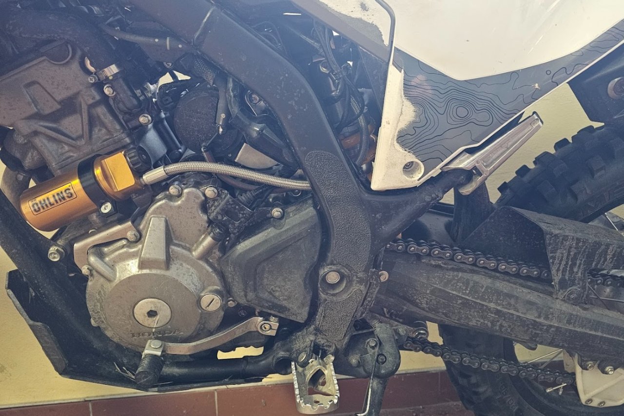 Habe andere aber ähnlich. Damit reibt sich der Rahmen nicht mehr ab. Seitenteil und Sticker haben trotzdem Kampfspuren von den Enduro-Stiefeln. Die sind halt hartes Plastik und haben kein Erbarmen Von einem Sturzbügel würde ich dir eher abraten. Einen Unterfahrschutz brauchst du sowieso, da der Rahmen ja da unten komplett ungeschützt verläuft. Die CRF baut aber unten so schmal, dass sie eh nicht auf den Motor fällt, wenn du auf ebenem Grund hinfällst. Bei unebenem Untergrund hilft dann auch so ein Sturzbügel, wie ich ihn an der 250L habe, nicht Und ein noch massiverer, der wirklich um den Motor rum geht, wäre (falls es überhaupt einen gibt - ich kenne keinen) so schwer, dass du aus dem leichten Bike dann doch wieder ein Dickes Monster gemacht hättest. Tatsächlich bin ich auch schon mal mit dem Sturzbügel an einem Baumstumpf hängen geblieben. Ob ich ohne auch gestürzt wäre weiß ich freilich nicht. Der kann aber auch stören