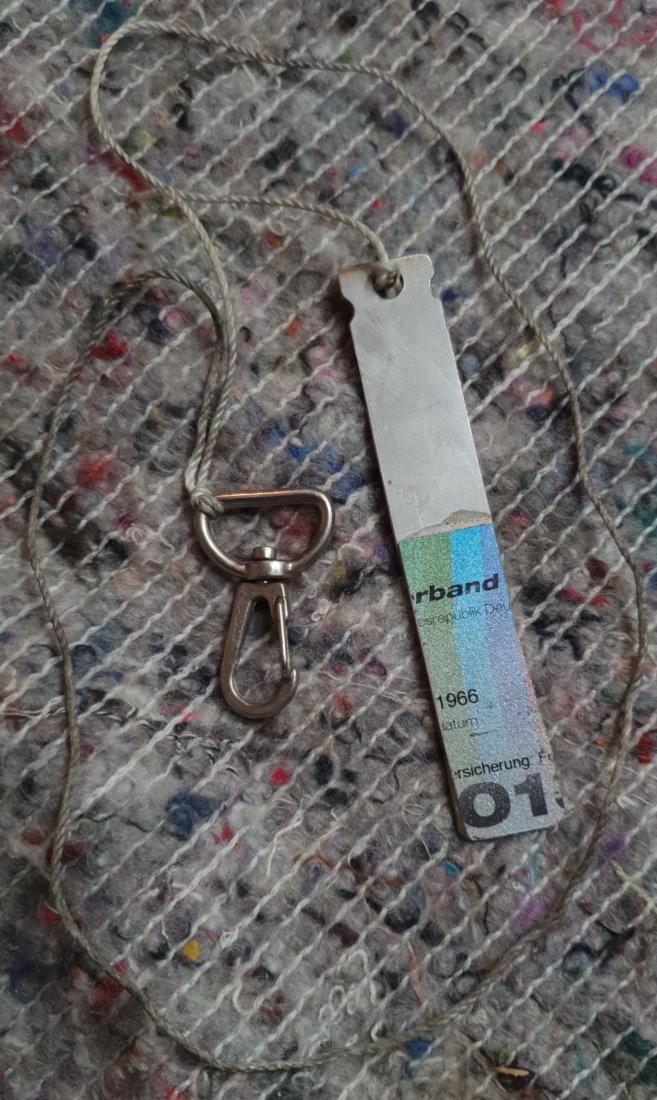 Das Blech ist 20x110 mm groß und ist aus 2mm Blech. Als Felgenschoner habe ich einen Streifen einer Plastikkarte aufgeklebt. Durch das kleine Loch läuft die Schnur. Sie hat einen Stopper an einem Ende und einen Minikarabiner am anderen Ende. An den zwei Kerben auf Lochhöhe wird die Schnur nach dem Spannen herumgewickelt. Durch die Schnur kann das Blech für viele Felgenbreiten/Reifengrößen verwendet werden.