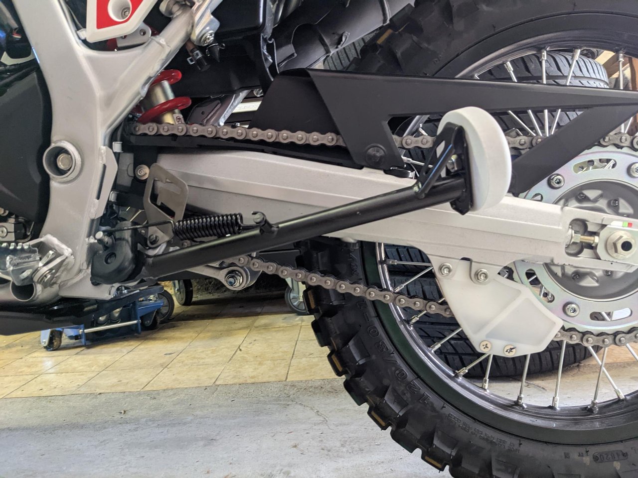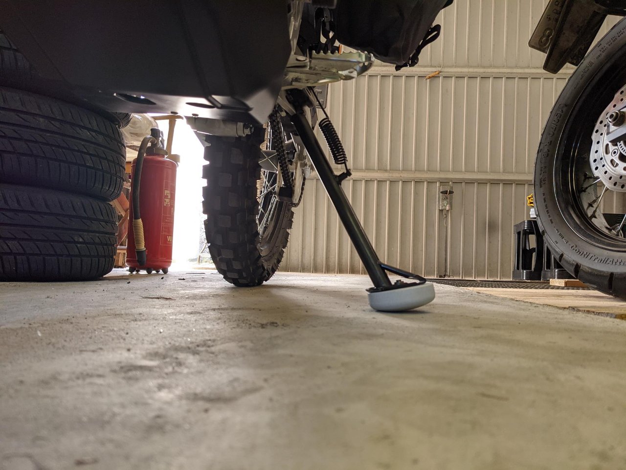 Einfacher und bequemer kann man m.E.n. nicht parken. Eine Kumpel nutzt das für alle seine Motorräder, ich hab sowas für meine MTBs und überlege ob ich mir das auch für die CRF zulegen soll. Ist auch für Wartungsarbeiten top.