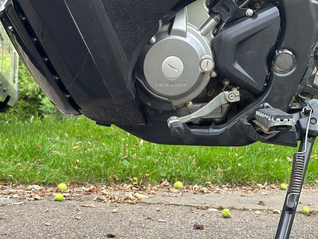 Und richtig, die unteren Schalen der Verkleidung haben jetzt weniger Führung weil man sie nicht mehr mit dem Unterfahrschutz verbinden kannn. Aber trotzdem noch ausreichend da sie ja über das Plastik vor dem Rahmen verbunden sind und dadurch in meinen Augen ausreichend stabilisiert sind.