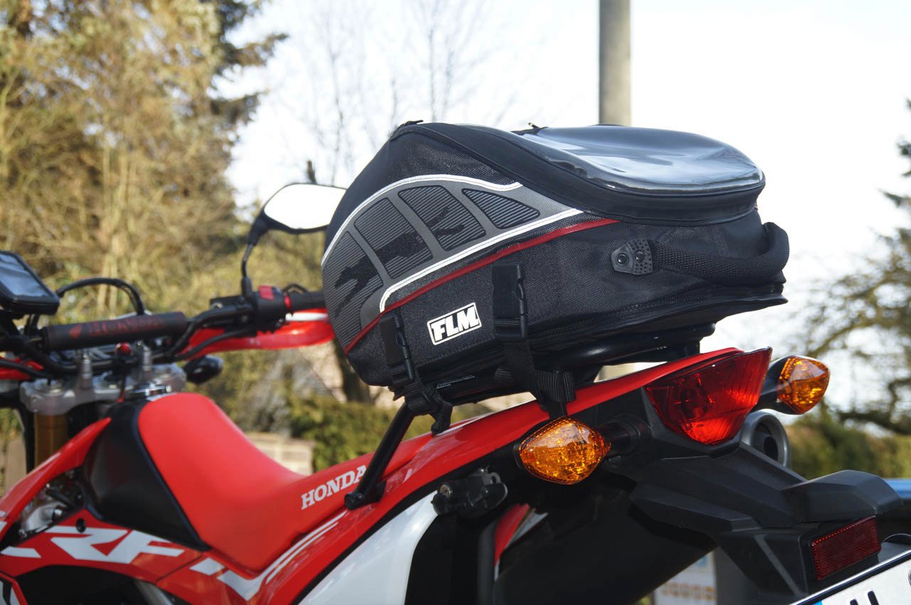 Mit der CRF fahre ich auch zur Arbeit, Brötchen holen oder auf Tour. Klar, dass man da einen Gepäckträger braucht. Aber wohin mit dem Kleinkram? Bei einer Enduro möchte ich kein Topcase wie auf den Straßenmaschinen, irgendwie passt das optisch schlecht.