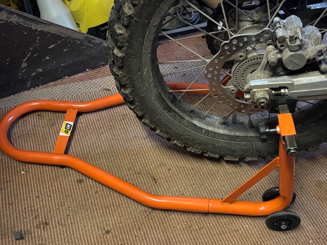 Mit dem Hauptständer an der Supertenere war ich auch nicht glücklich, aber zum Kette schmieren und Reifen wechseln war er Gold wert.