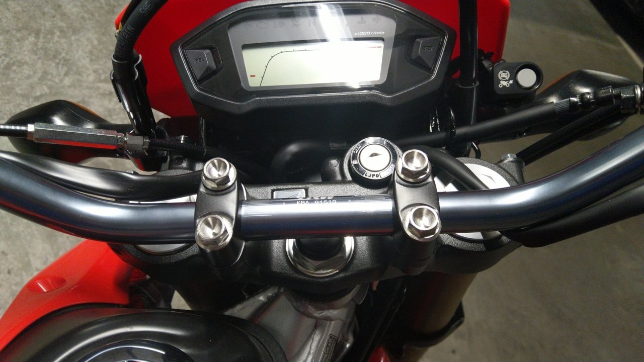 Hier noch ein Bild vom TRW Lenker mit den Titanschrauben.