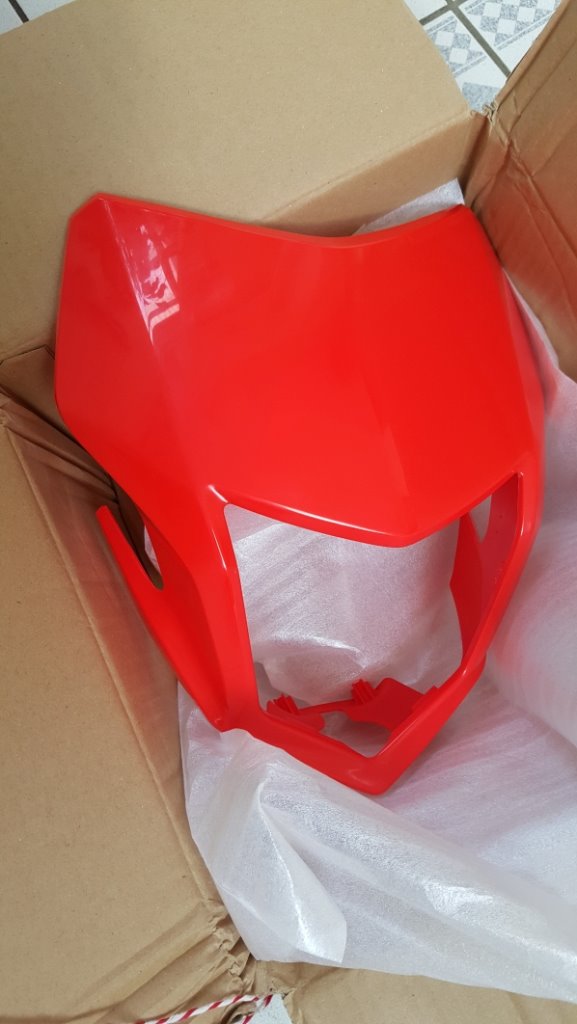 Damit die Zora ihrem Namen alle Ehre macht und, weil ich es vermutet lieber leiden mögen würde, habe ich bei Bikerzbits eine originale rote Frontmaske bestellt. Der Bestellvorgang war einfach, das Überweisen des Geldes nach Irland irgendwie spooky. Die Sendungsverfolgung bei der Thai-Post ist eher was für Sprachbegabte - mir sagten die Hieroglyphen und Kringel nichts und eine Übersetzung mit dem Googleomaten ging nicht.