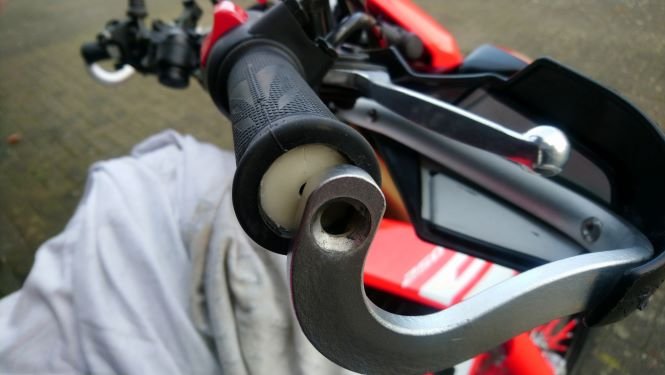 ich habe noch stabile ACERBIS-Handprotektoren, die ich gern an der CRF montieren möchte. Dabei bin ich auf zwei Probleme gestoßen. Die Befestigung erfolgt mit Spreizschraube im Lenkerende und mittels Klemmung am Lenkerrohr.