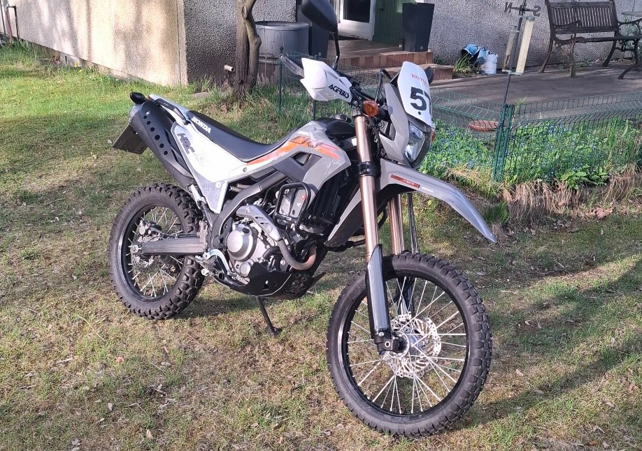Honda crf 300 L EZ. Juli 2023 mit hochwertigen Zubehör, Motorschutz-Wanne, Handprotektoren, Sturzbügel von Motortek, großes Staufach, Griffleisten hinten, Navigation mit Schutzblende. 6200 km gelaufen. Reifen Hinten erst kürzlich neu, für Vorne ist noch ein neuer dabei. PREIS.: VB 4900,- Euro