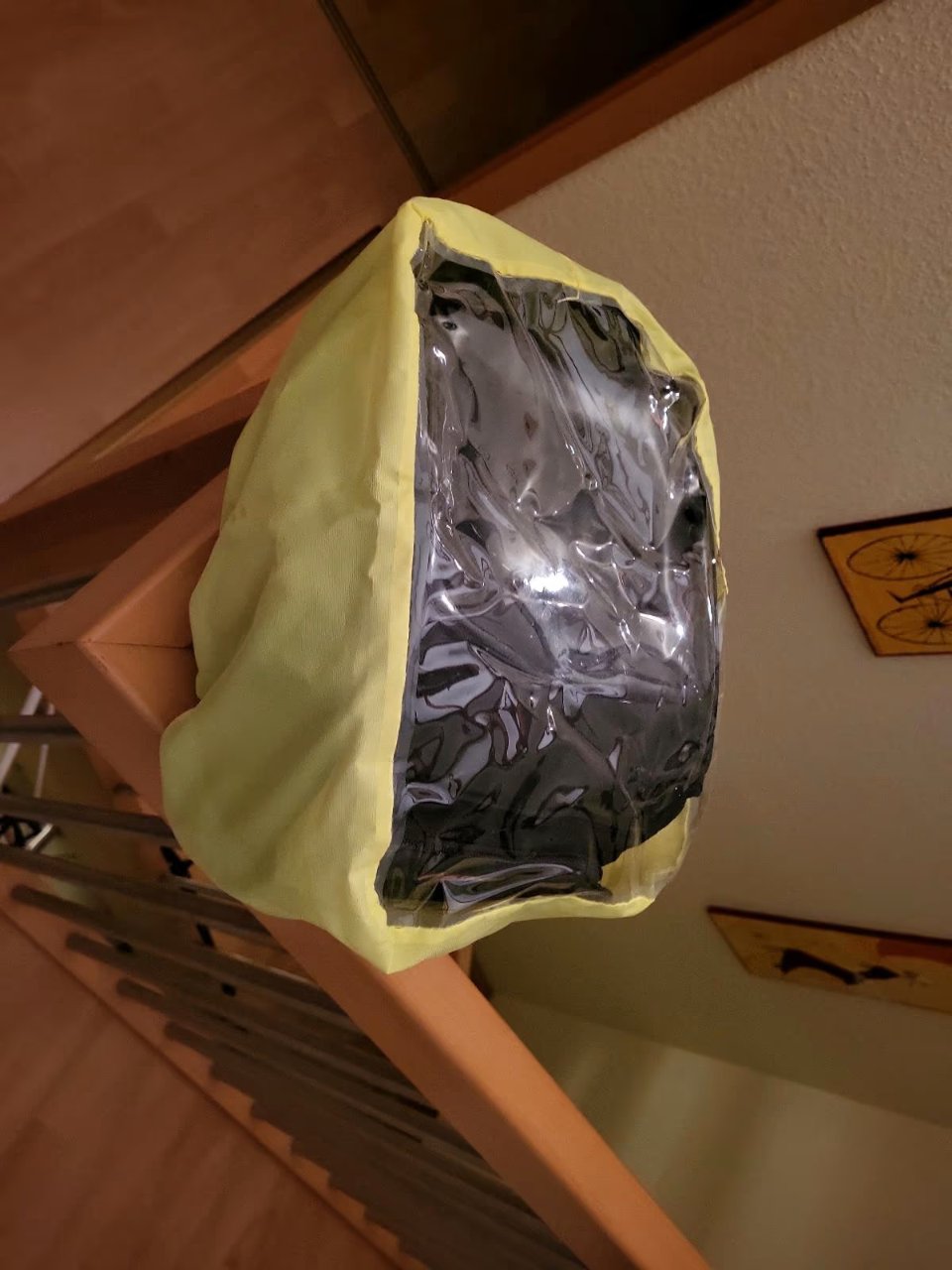 Befestigung über Riemen und Magnete, Regenhaube liegt bei.