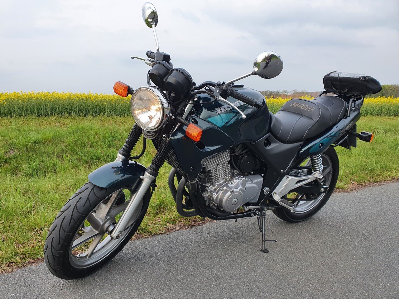Mein Oldie, eine 1995er CB500 (PC26), die ich besonders gern habe. Kein Motorrad ist langlebiger. Reichweite 450 km mit einer Tankfüllung, 190 Kilo, 190 km/h. Kaufpreis 300 Euro mit allen Unterlagen ab Erstzulassung, jetziger Zustand 1.