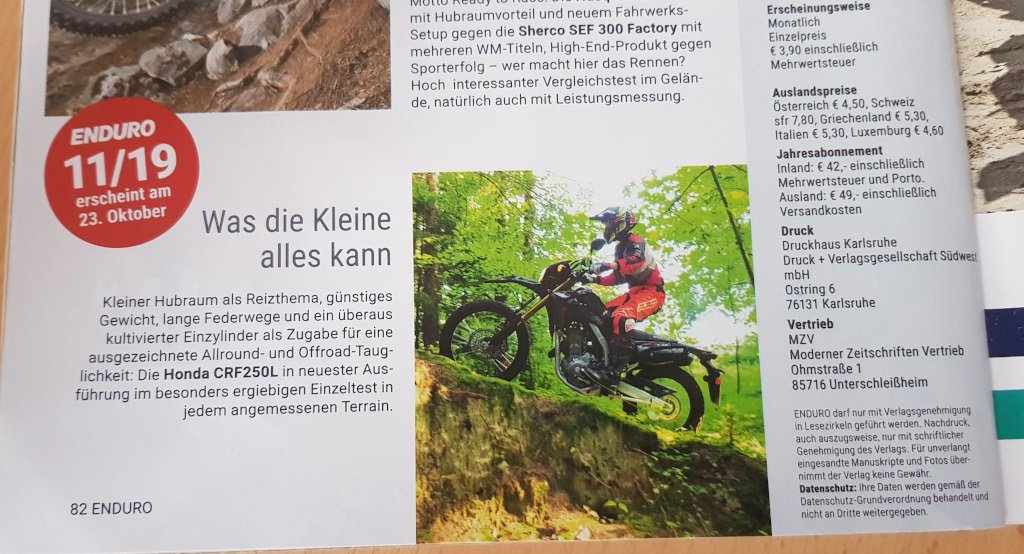 Re: CRF 250 L Test in der nächsten Enduro Ausgabe