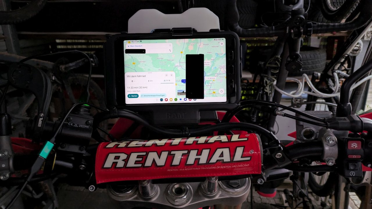 Momentan suche ich noch einen vernünftigen Halter für mein neues Navi-Tablet 8" Samsung Active 5. Ich bin mir nicht sicher, ob das Aufladen über die "Pogo-Pins" auf der unteren Schmalseite in einer passenden (teuren) Halterung auch funktioniert: Stichwort Vibrationen.
