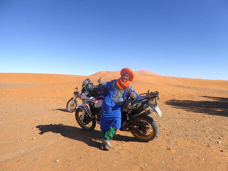 Die AT-Wüsten-Fotos sind alles Poser-Aufnahmen im Erg Chebbi. Da kann eigentlich nicht viel passieren, wenn der Bock verreckt, oder so, dann kann man in max. 3 h wieder rauslaufen. Ist halt ein großer Sandkasten. Dort war ich schon 3x und werde wohl wieder hinfahren, am liebsten mit der 450er, dann hätte ich mal wirklich Spaß!