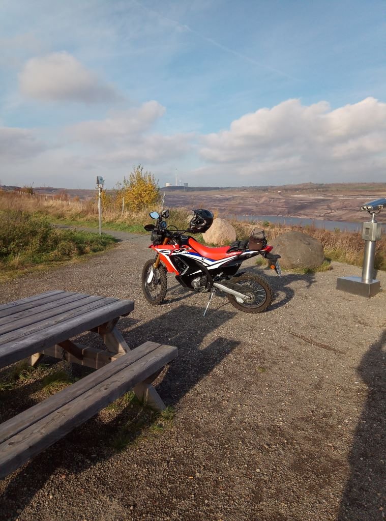 Bild[/img]Heute noch ein mal das Spätherbst Wetter genutzt und eine kleine Runde mit der 250 Rallye gefahren. Bei ca 6Grad und Sonnenschein ging es zum Tagebau nach Schöningen im Elm. Es war eine schöne 170 KM Tour gewesen. Zeitlich von 11-14 Uhr. Danach wurde es merklich Kälter und um 17 Uhr kam der Regen.