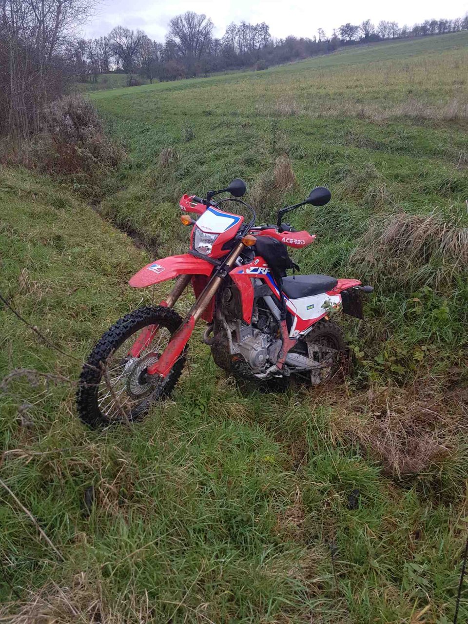 Bin heute ne Runde Endurowandern mit der Kleinen 300L gewesen. Bin ganz schön ins Schwitzen gekommen trotz der kühlen Witterung. Manchmal steht die Kleine CRF auch ohne Ständer! :D