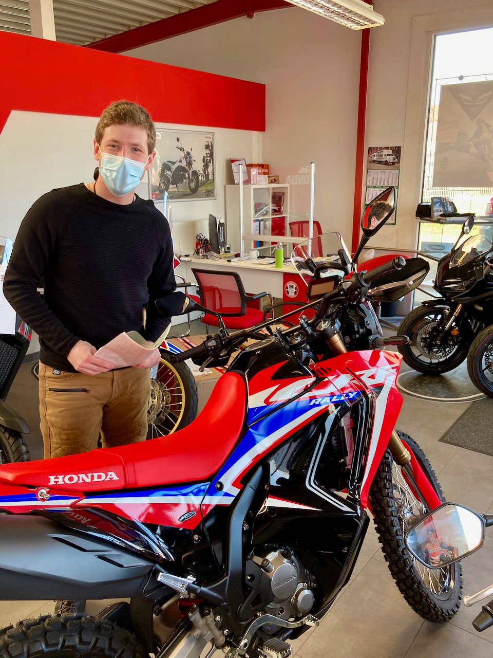 Kurz nachdem Honda dann verkündet hat, dass es eine 300er Rally geben wird, war es um mich geschehen und ich bin zum Händler geflitzt um eine Bestellung aufzugeben. Wie bereits im anderen Beitrag erwähnt durfte ich diese dann super früh beim Hondahändler in Empfang nehmen. Dieser teilte mir mit, dass es das erste Neufahrzeug war, was in diesem Jahr dort den Hof verlassen hat.