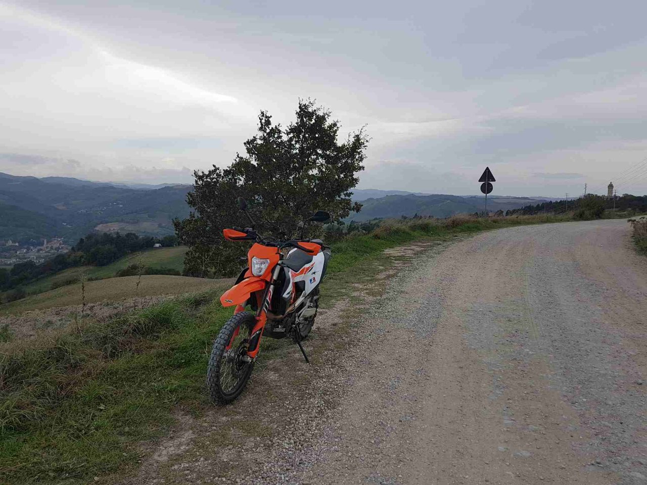 Mit dieser bin ich noch 2 schöne Touren in der Emilia Romagna gefahren, klassisches Endurowandern ä la TET. Schöne Schotterwege, auch mal einen Steilhang, Trails, aber bei weitem nicht so heftig wie in Ligurien. In der Emilia Romagna/Toscana kenne ich mich auch ganz gut aus, da fahre ich einfach drauflos und suche mir meine Wege selbst. Das ist eher was für die CRF 250er/300er.
