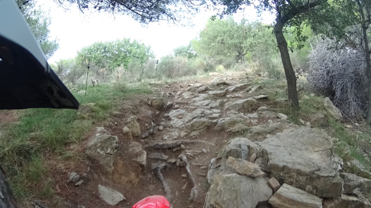 Der erste Tag war allerdings für mich fast das Ende: die giftige 300 TPI ist mir in einer Steilauffahrt vorne so plötzlich hoch gestiegen, dass ich nur noch den Himmel gesehen habe und nach hinten abgestiegen bin. Dabei bin ich voll auf einen Stein mit dem Rücken geknallt und hab mir das Steißbein/Hüfte geprellt. Danach hab ich mich nur noch mit Schmerzen ins Hotel geschleppt, unter die heiße Dusche gestellt und mit Diclo und kühlem Gerstensaft die Muskeln entspannt.