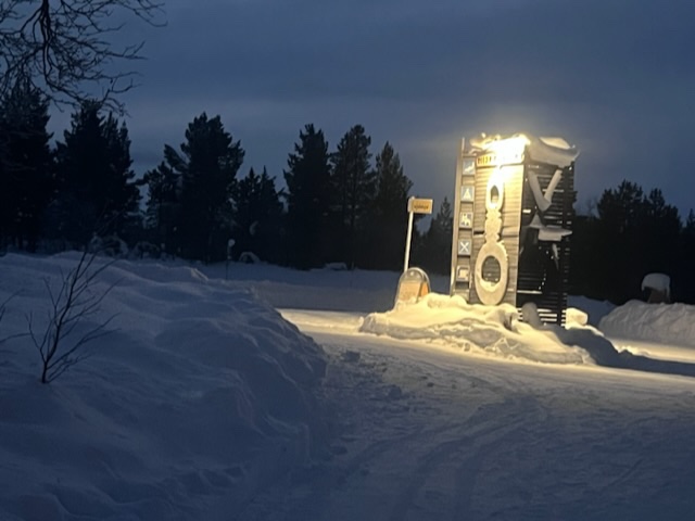 Hat sich der eine Kollege entschieden über die Autobahn nach Kittilä zu fahren. Also sind wir zu 2. über Nebenstrassen nach Rovaniemi gefahren. Herrlich über die vereissten Strassen zu brettern. Von Rovaniemi fuhren wir nach Kittilä. Beim letzten Tankstopp hatte ich leider ein Problem. Der Schlüssel hat sich im Schloss festgefrohren und ich brachte den Schlüssel auch mit Türschlossenteiser nicht raus. Zum Glück wars nichtmehr so weit nach Kittilä. Die fahrt war für mich sehr speziell, immer in Angst das mir das Benzin ausgehen konnte, schaute ich immer wieder zwischen Navi und Tacho hi. Und herr. 10km vor Kittilä leuchtete die Reserveanzeige auf. Meine sorgen das dass Benzin nicht reichen könnte verflog somit auch und sofort die Tankstelle angestuert. Dort konnte mir zum Glück jemand an der Tankstelle mit einem Föhn helfen. Wir haben uns dan anschliessend entschieden das wir uns nach dem Tanken im Hotel treffen. An der Tankstelle haben mich zwei Schweizer noch angesprochen. Nach einem kurzem schwatz wollten sie noch mein Motorrad Fotografieren und einem Kollgegen senden. Das Bild hab ich später wiedergefunden. Dazu aber später mehr.