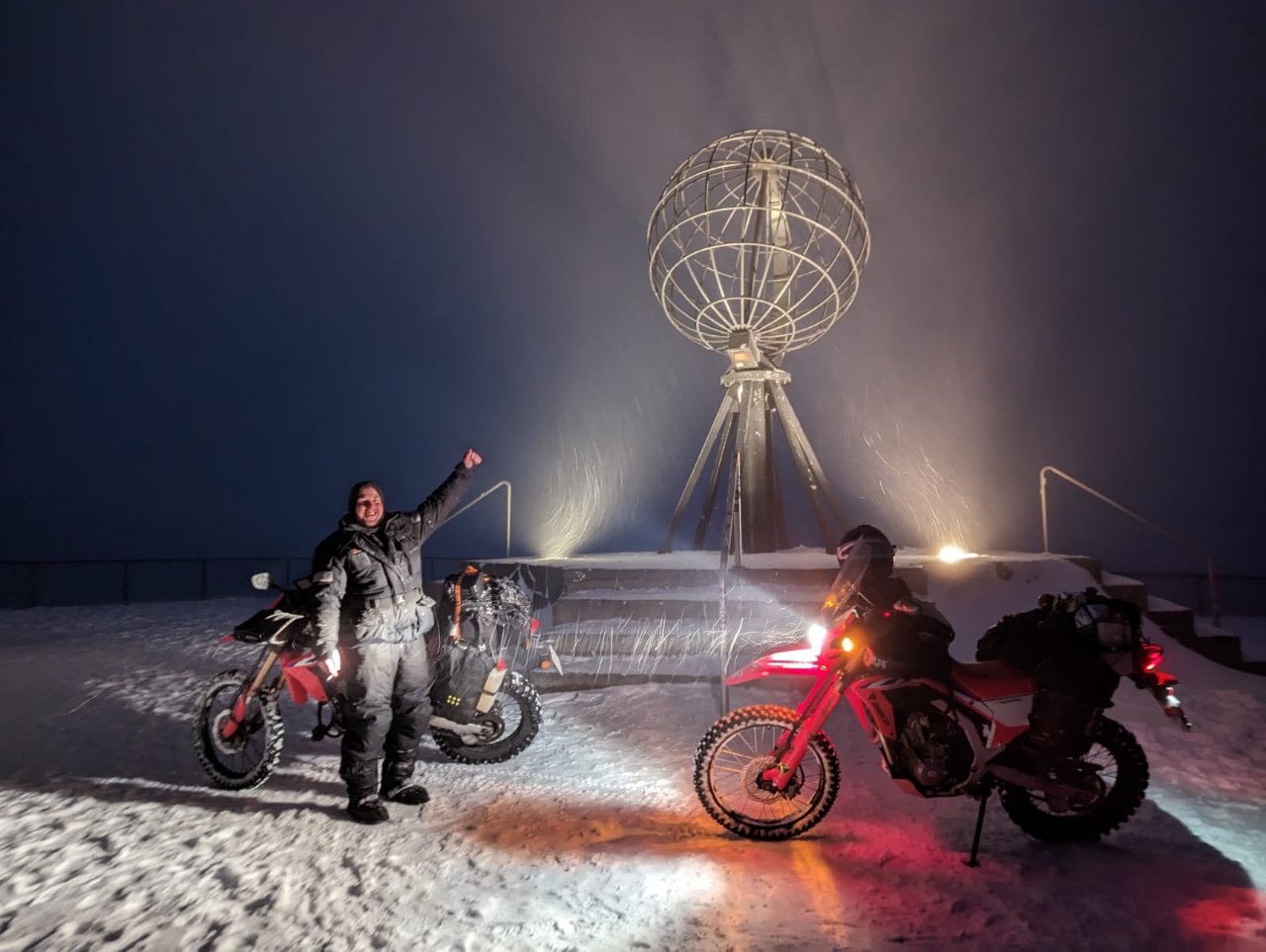 Im Dunkeln sind wir die kurvenreiche Strecke zum Nordkap hochgebrettert. Und oben angekommen konnten wir gleich zur Kugel vorfahren.