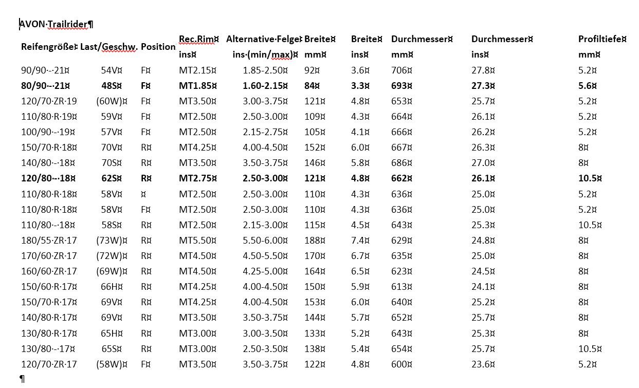 Btw. der Lastindex der 80/90 ist kleiner als der der werksseitigen Eintragung.