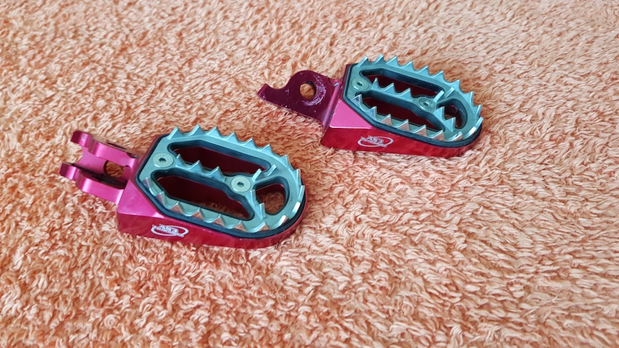 Rot eloxierte Fussrasten. Größer als Original, sehr guter Halt)