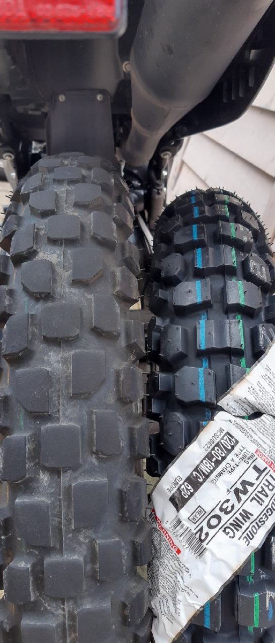 Der Vorderreifen baut sehr breit, breiter sogar als der 90/90-21 Anakee Adventure an meiner Tenere. Ich werde mal ein Vergleichs-Foto machen.