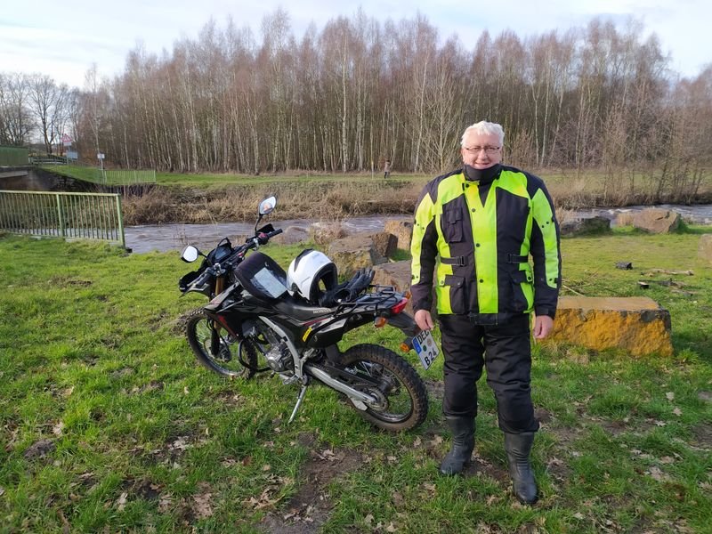 bei 6 Grad und regenfrei war ich heute mal wieder in meinem Einsatzgebiet unterwegs. Das Foto zeigt die Hunte in Bühren und ist vor netten Geländefahrten aufgenommen, danach sah sie anders aus. Hier in der Wildeshauser Geest gibt es viele Offroadstrecken, Feldwege und Flussdurchfahrten. Ich fahre schon seit 10 Jahren CRF 250 L, mittlerweile die MD 44 wegen Drehzahlmesser und ABS in meiner Wunschfarbe schwarz. Nachgerüstet habe ich Gepäckträger von Bikerz Bizz, Handschützer von Touratech, Sturzbügel und einen selbst angefertigten Motorschutz. Den kleinen Tankrucksack gab es bei Louis. Außer der CRF 300 L gibt es für mich nach wie vor keine Alternative zur CRF.
