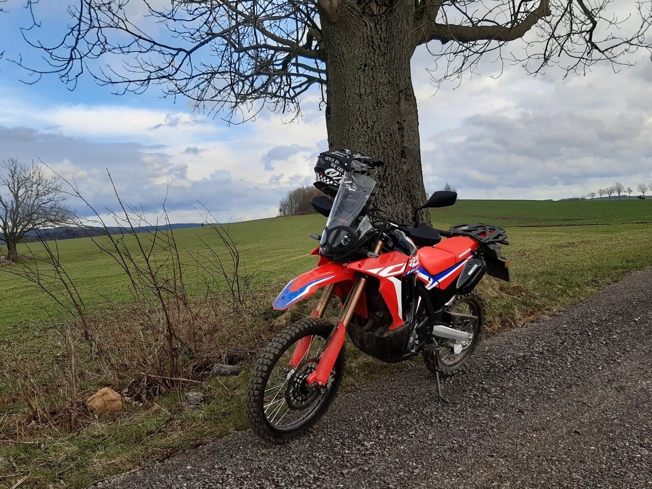 So, heute mal kurz nach Arbeit das gute Wetter genutzt. Bei etwas Wind und stabilen zweistelligen Temperaturen eine kleine Runde über die lokalen Schotterstraßen gedreht. Das ging mit der Honda sehr entspannt. 10 Minuten vor dem Gewitter wieder zuhause gewesen.