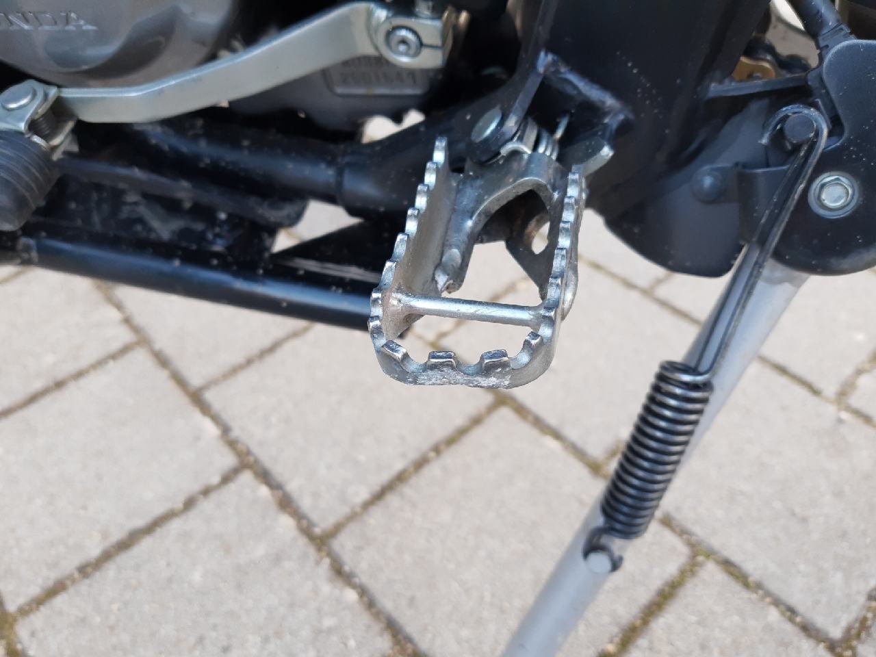 Blinker hinten ab, Kupplungshebel kürzer, Werkzeugfach zerstört, Fussraste verbogen, Sturzbügel zerschrammt.