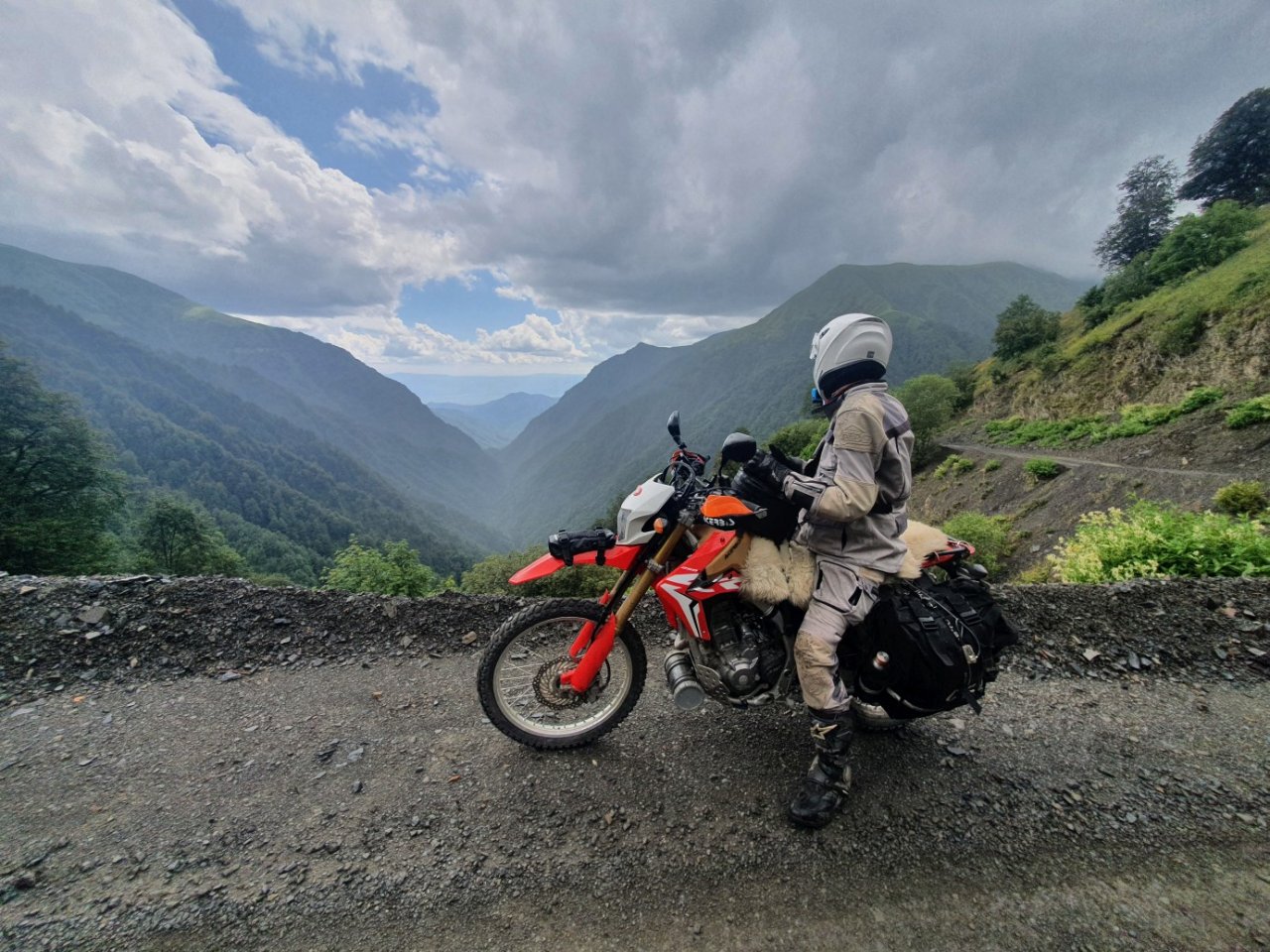 In Georigen bin ich viel Offroad gefahren, teils wirklich nicht nur Schotterwege, sondern einmal war der Weg vorbei und ich wollte nicht umdrehen, da ich keine Lust hatte nochmal von den riesigen Hirtenhunden verfolgt zu werden, also bin ich quer übers Land gefahren. Der Hirte auf seinem Pferd hat mich natürlich gesehen und gehört, aber nichts, kein Problem, eher hätte ich eine Einladung zum Wein bekommen.