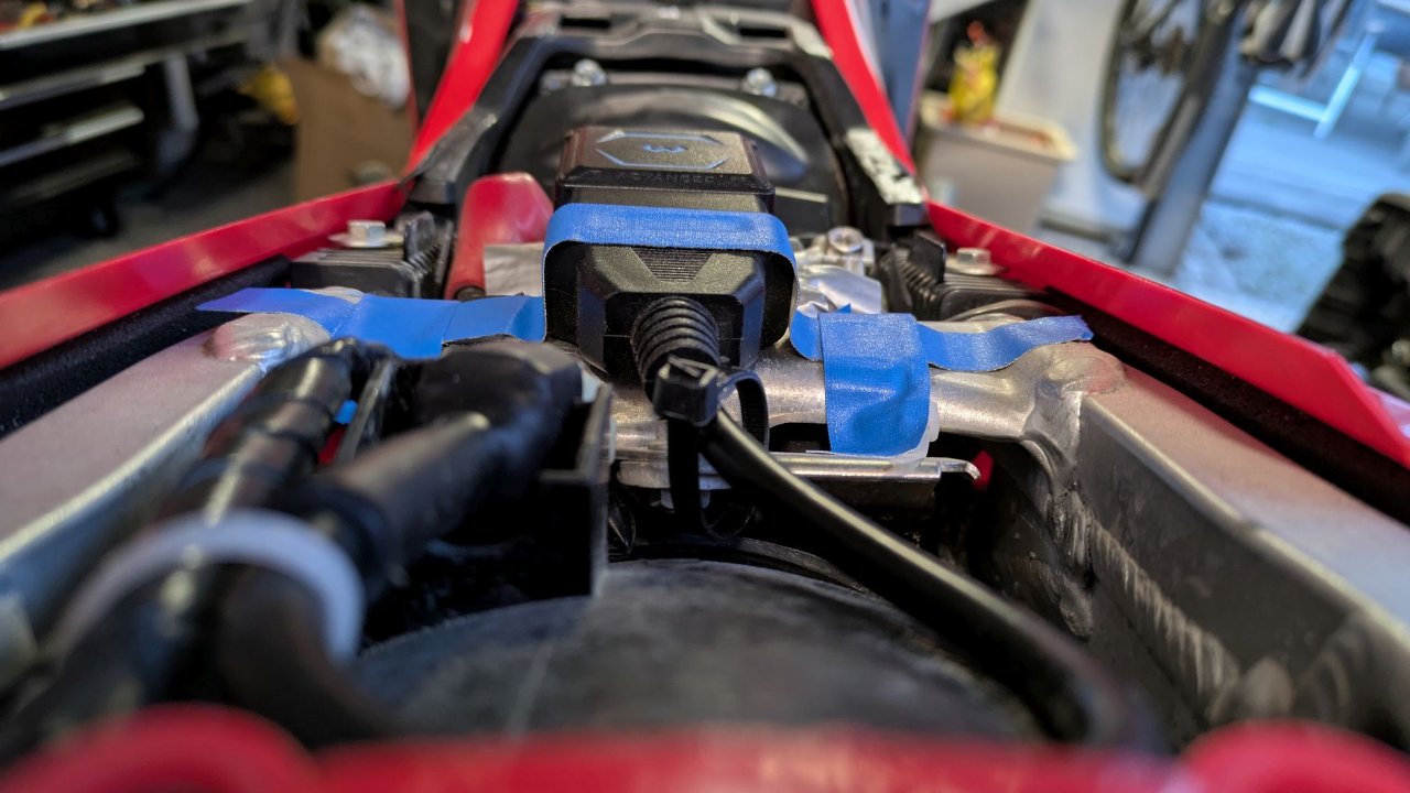 ich habe den bluetooth DMD OBD Scan M1 Dongle an den 4-Pin-Connector der CRF 450L per Kabel angeklemmt. (siehe Fotos). Leider ist der Platz unter der Sitzbank arg knapp. Die einzige Position, wo ich den Dongle verstaut bekomme, ist genau zwischen den beiden Höckern der Sitzbankunterschale, die auf dem Rahmen aufsetzen.