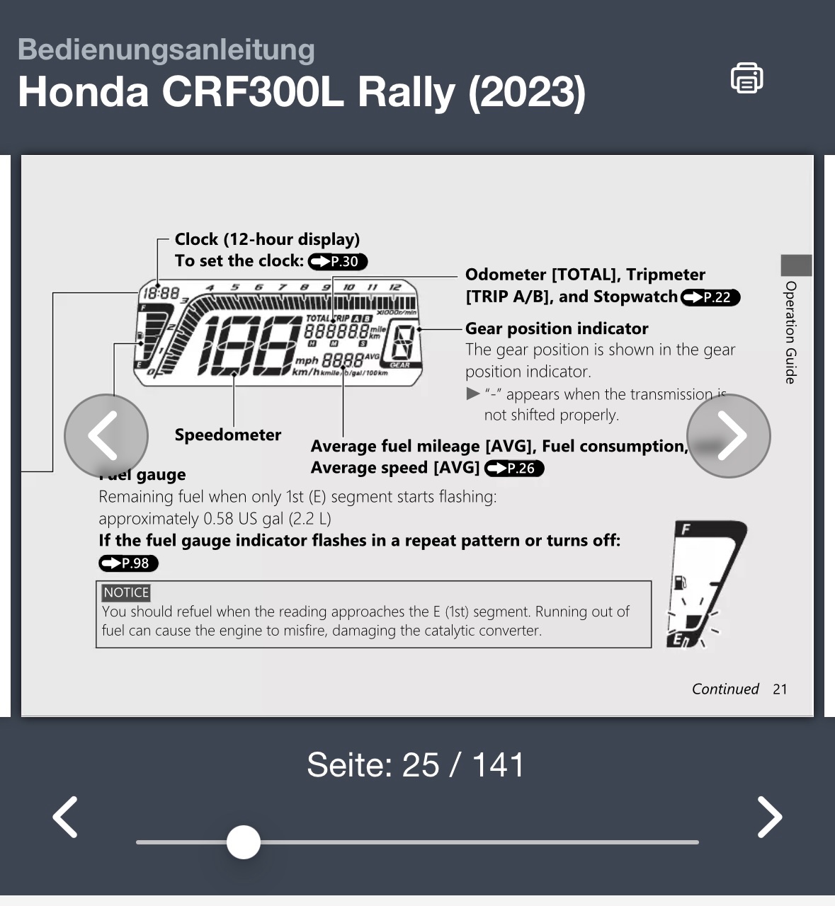 Bei meiner 23er verschwinden in der Balkenanzeige im Display bereits bei gut 5l Verbrauch drei Balken.