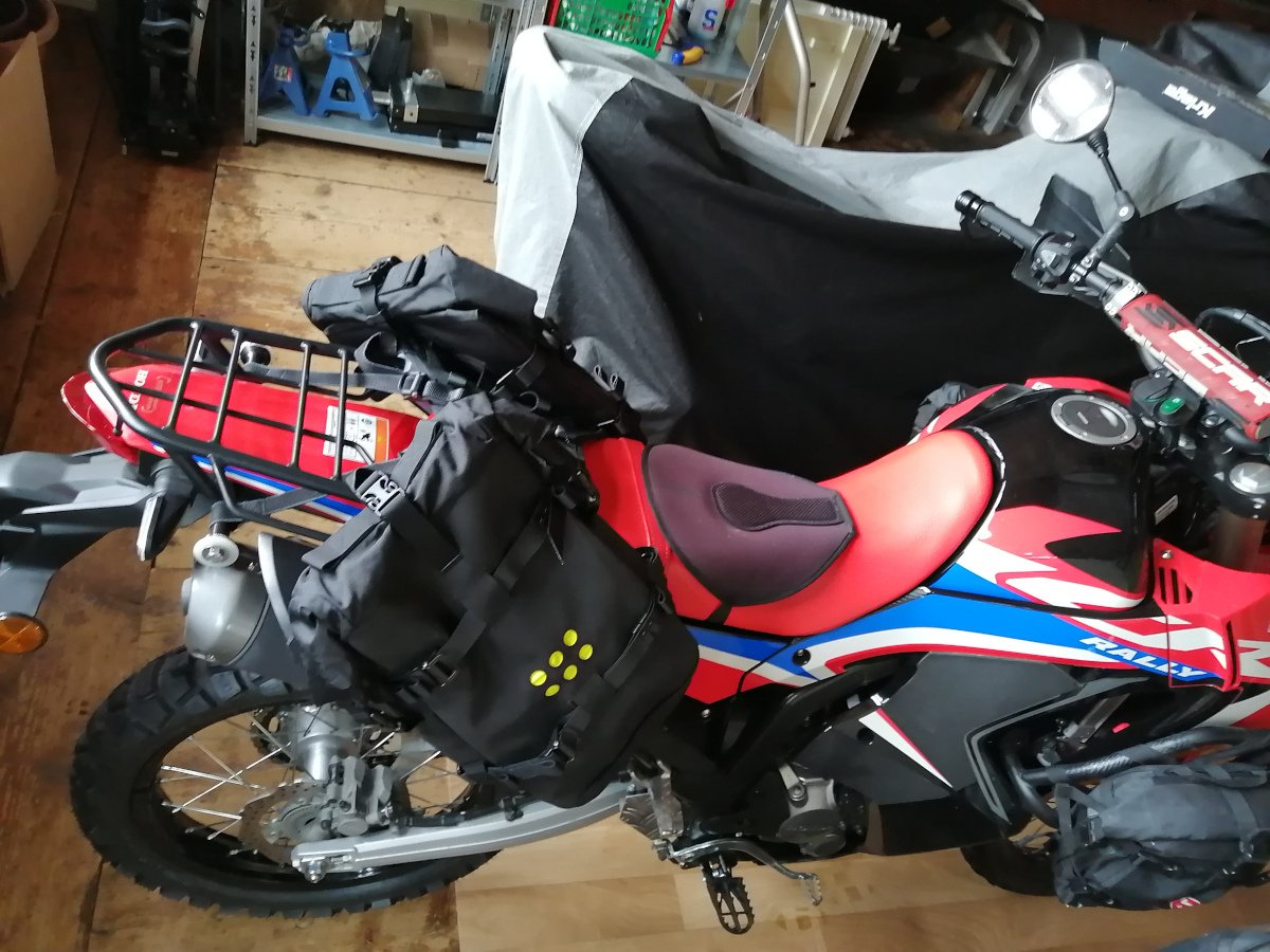 Gerade die CRF300 Version von Kriega montiert.