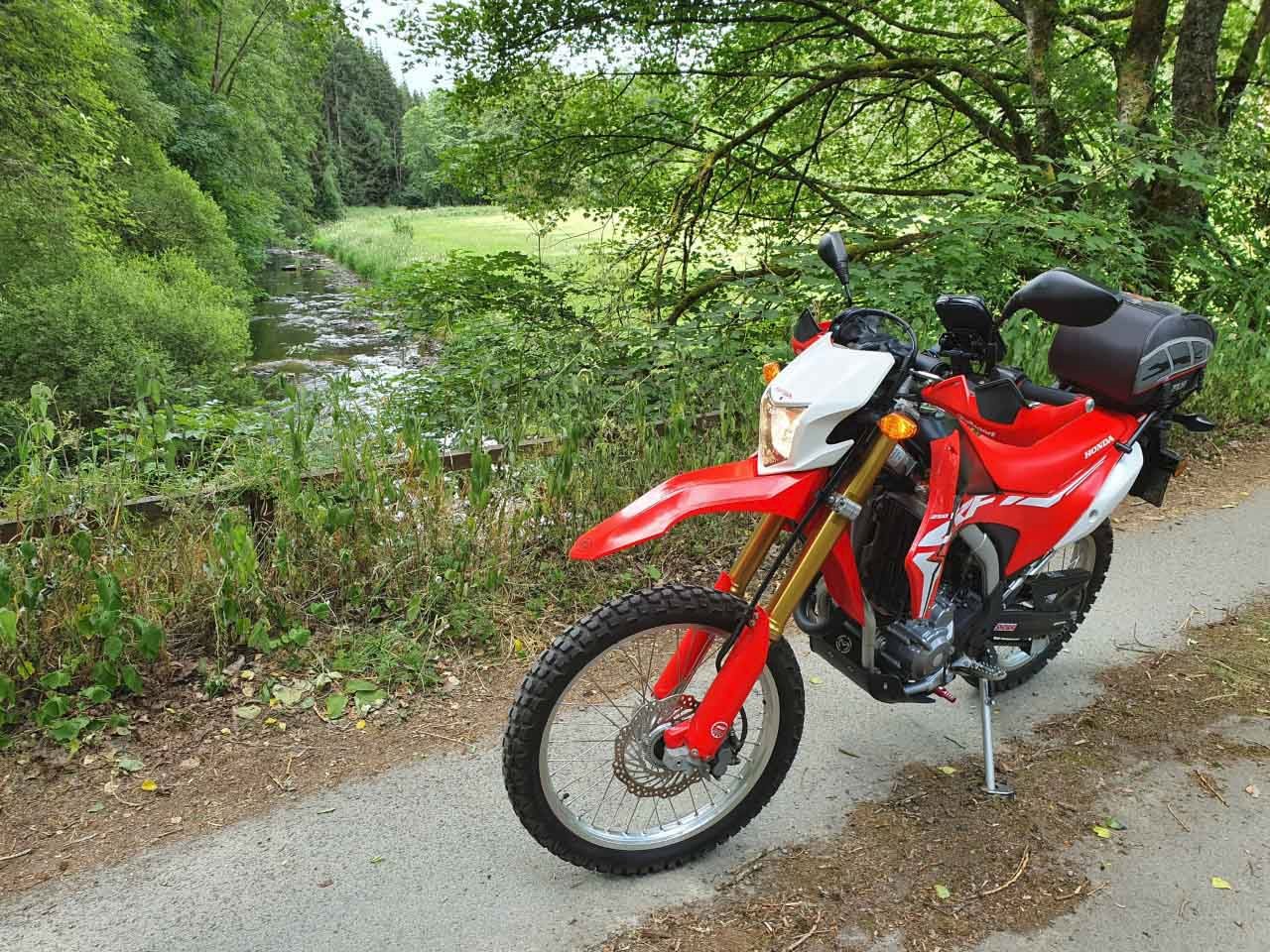 Die CRF mit ihren 25 PS und ihrer Endurobank wird von manchen nicht recht ernst genommen, wenn es um solche Touren geht. Ich denke anders darüber und war froh, mit der CRF da gewesen zu sein. Es fängt damit an, dass ich gerne mal Straßen ausprobiere -je schmaler, desto besser. Manchmal endet so eine Straße aber irgendwo oder wird immer schmaler. Möchtet ihr dann die Sechszentner-Adventure GS Rally Tenere wenden? Ich nicht.
