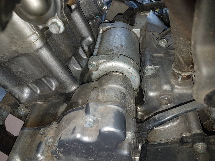 Ergebnis heute: Unterhalb des glaub Kupplungsgehäusedeckels wieder eine ganz kleine Tropfnase und an einer Stelle (müsste die Wasserpunmpe sein, bin aber totaler Laie) gab es auch wieder einen Mini Tropfen (blauer Kreis).