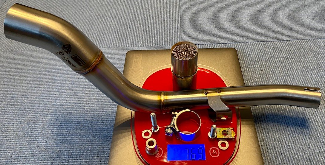 Arrow: [Krümmer 767gr] + [Zwischenrohr mt Kat 769gr] + [Endtopf 1.761gr] = 3.297gr