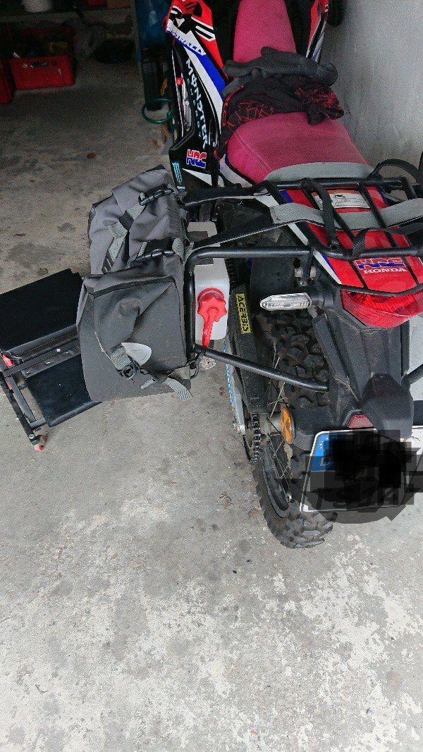 Daran kann ich jetzt die Tasche etwas besser befestigen und es passt ein 1,5 l Fuelfriend auf die andere Seite. Quasi ein range extender für 50 km :lol: